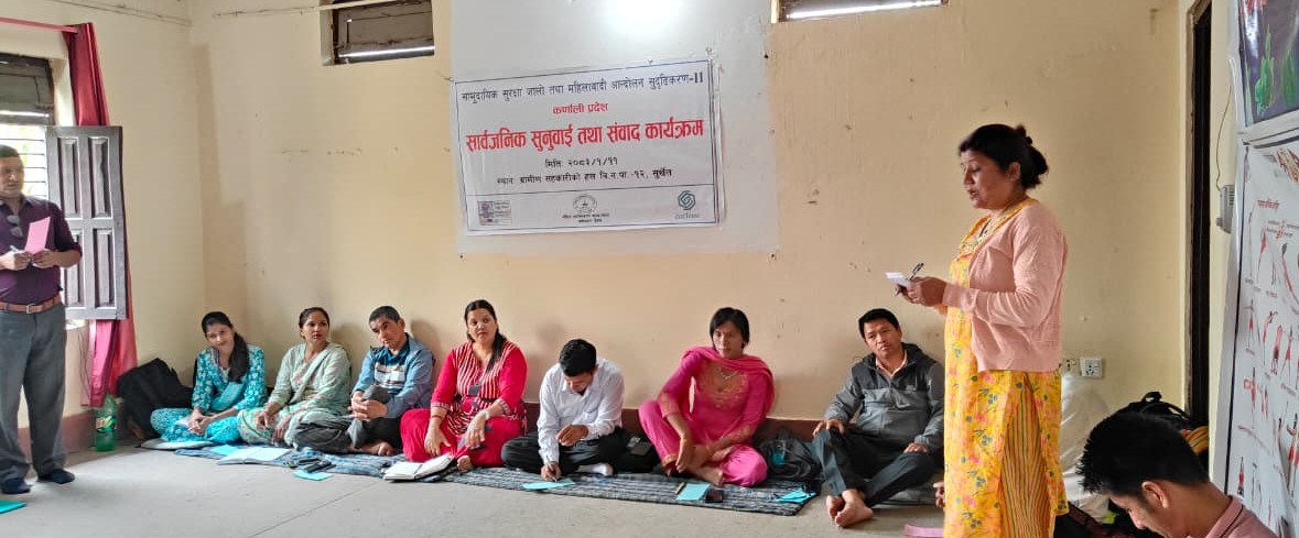 कालीकाेट । शुभकालिकामा सामुदायिक सुरक्षा जालो तथा महिलावादी आन्दोलन सुदृढिकरण परियोजनाको सार्वजनिक सुनुवाई कार्यक्रम सम्पन्न भएको छ । सशक्त महिला समृद्ध नेपालको आर्थिक सहयोग टेवाको समन्वय र महिला सशक्तिकरण मञ्च नेपालको सहजिकरणमा सामुदायिक सुरक्षा जालो तथा महिलावादी आन्दोलन सुद..