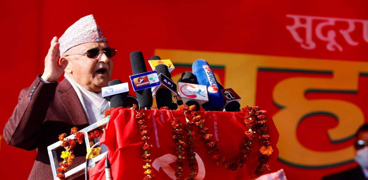 शुक्रबार कैलालीको धनगढीमा आफु पक्षीय कार्यकर्ता भेलालाई सम्बोधन गर्दै ओलीले प्रचण्ड माधव अहिले सडकमा गाली गलोजमा उत्रिएको आरोप समेत लगादैं आफुलाई जुनसुकै गिरोह लागेपनि हराउन नकसक्ने बताए ।
