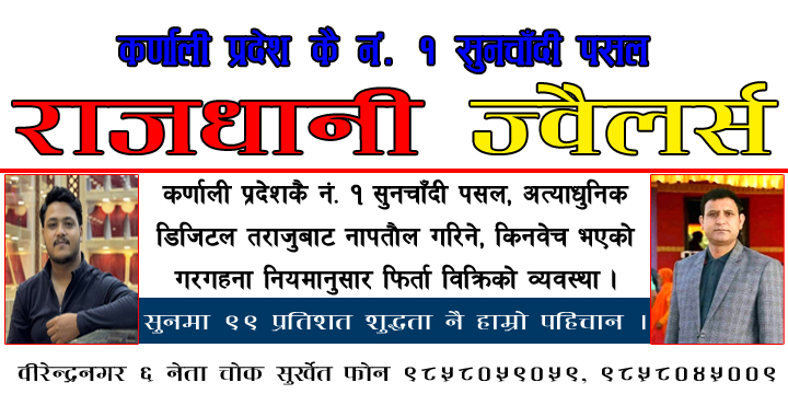 सम्पर्क कार्यालय : वीरेन्द्रनगर ३, सुर्खेत कर्णाली प्रदेश नेपाल