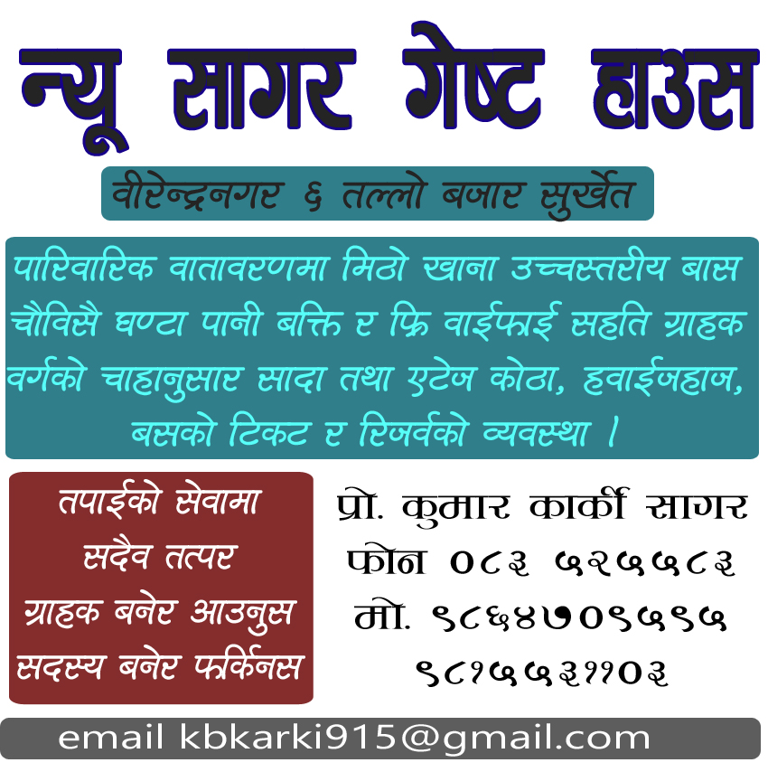 सम्पर्क कार्यालय : वीरेन्द्रनगर ३, सुर्खेत कर्णाली प्रदेश नेपाल